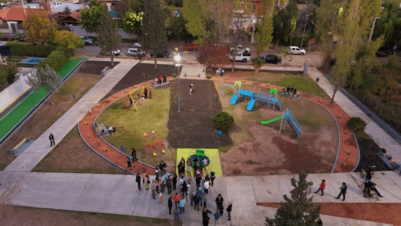 Esta puesta en valor se realizó a través de la Secretaría de Obras y Espacios Públicos. La plaza cuenta con sectores para todas las edades, entre los que se destacan nuevos juegos infantiles con mangrullo, tobogán, columpio, calesita inclusiva y una nueva cancha de fútbol-tenis. Se trata de un espacio completamente renovado, con veredas internas perimetrales y accesos peatonales, especialmente pensados para personas con discapacidad motriz.