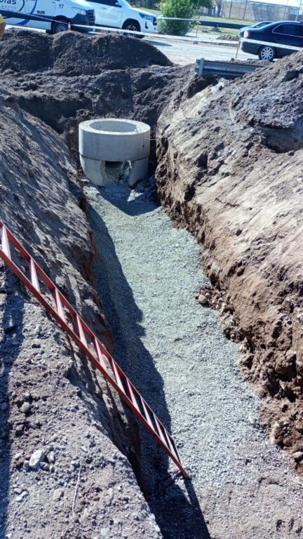 Según el cronograma, ya se finalizó todo el colector nuevo en el tramo correspondiente a la mano Sur–Norte (lado Este), y quedó habilitado al tránsito. Actualmente se interviene la mano Norte–Sur (lado Oeste), que este miércoles por la tarde o noche quedará habilitada de manera provisoria con suelo cemento enrasado al nivel de la calzada.