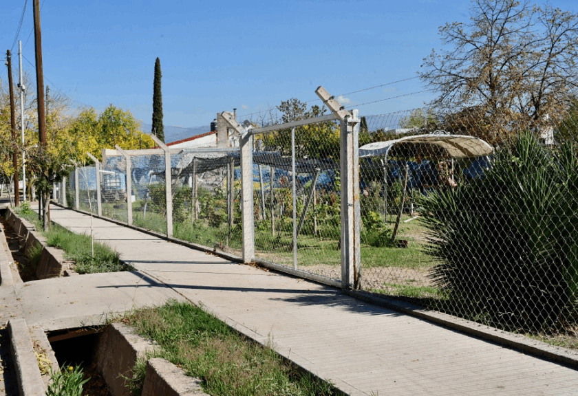 También en el barrio Batalla del Pilar se concretaron mejoras para la huerta comunitaria, un espacio cuidado por los propios vecinos. Allí se construyó una vereda donde antes solo había tierra y un puente vehicular para facilitar el acceso. Además, se realizó el cierre perimetral completo con tela romboidal galvanizada.