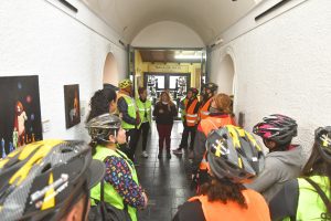 La iniciativa comenzó en el Espacio Cultural Julio Le Parc, donde los participantes pudieron apreciar las obras pictóricas y artísticas expuestas allí. Luego, se dirigieron a la Municipalidad de Guaymallén para conocer la historia de las distintas obras patrimoniales que hay en el edificio; y desde ese punto pedalearon hacia Salas de Arte Libertad para visitar la actual muestra de pinturas y obras textiles.