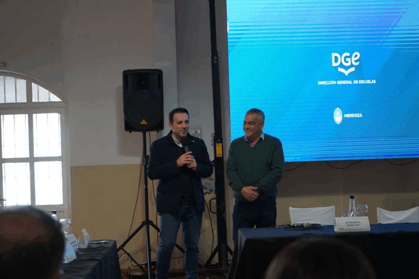 El intendente Edgardo Gonzalez junto a su equipo de gobierno, el Ministro de Educación de Mendoza Tadeo García Zalazar, representantes de distintos municipios y directores de la DGE, estuvieron en la reunión con el objetivo de articular acciones conjuntas para fortalecer la educación.