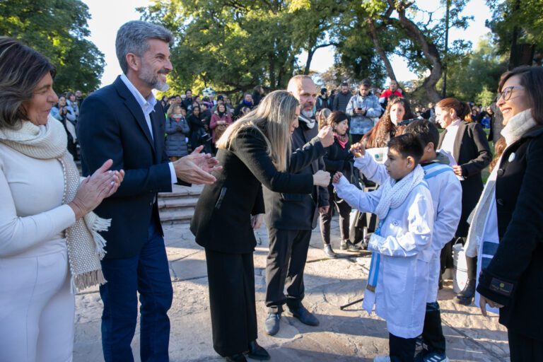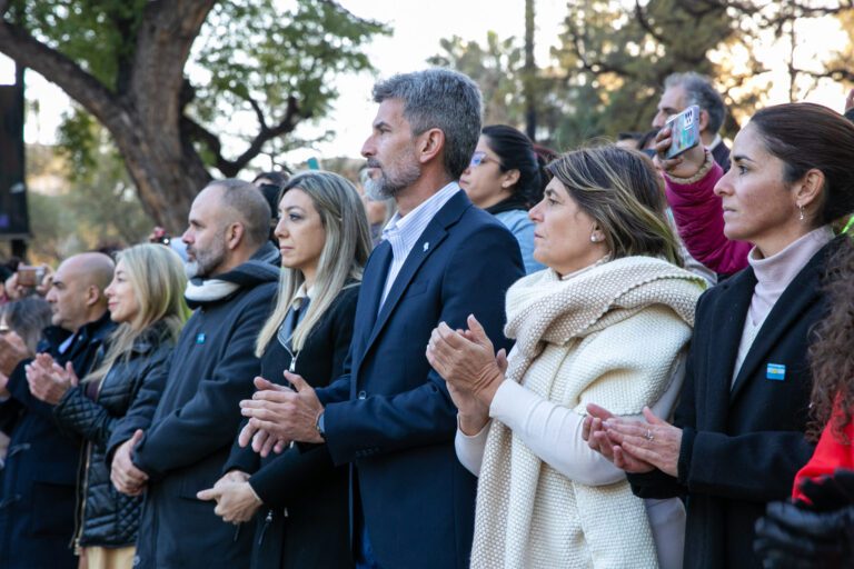 El acto contó con la presencia del intendente de la Capital, Ulpiano Suarez; el secretario de Gobierno, Pablo Espina; la subsecretaria de Cultura, Laura Fuertes; la senadora Mariana Juri; la coordinadora general de Políticas Educativas de la DGE, Adriana Yenaropulos, y la directora de Educación de la municipalidad, Elvira Stone. Además, la Banda Militar General Espejo interpretó el Himno Nacional Argentino y luego otras piezas musicales, entre estas, cuecas cuyanas.