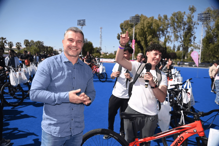 Por octavo año consecutivo, se entregaron más de 300 bicicletas y 22 tablets a abanderados y escoltas de escuelas secundarias públicas y privadas. El evento “Pedaleando hacia el futuro” se caracteriza por destacar la inclusión al mérito académico.