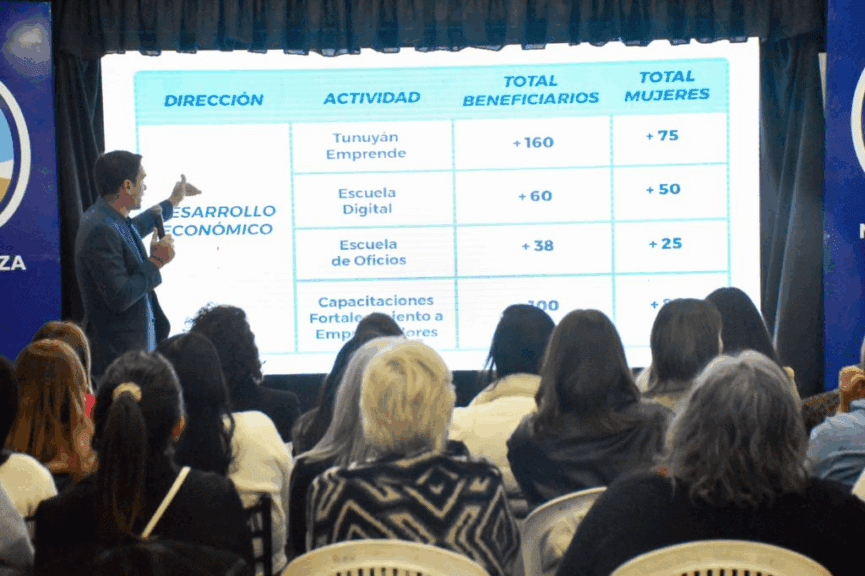 La exposición permitió mostrar de manera concreta cómo los programas municipales se han transformado en herramientas de inclusión. Uno de los más destacados es Tunuyán Emprende, que en los últimos años entregó equipamiento para oficios a las mas de 160 beneficiarios, de los cuales 75 son mujeres. Mencionado programa ha sido clave para que muchas de ellas res puedan iniciar un proyecto productivo propio o fortalecer el que ya venían desarrollando.
