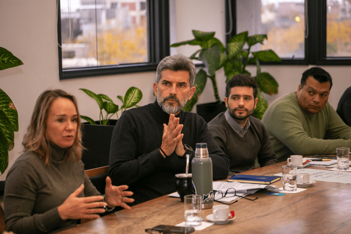 El jefe comunal de Ciudad, Ulpiano Suarez, y la presidente de Colegio de Arquitectos de Mendoza (CAMZA), Leticia Martínez, encabezaron la reunión donde se presentaron los avances realizados de las bases y condiciones para el lanzamiento del Concurso Nacional del Distrito Fundacional. Estuvieron acompañados por el equipo de la Secretaría de Ambiente y Desarrollo Urbano del municipio y por la Asesora de CAMZA, Nurit Eschmulevich, entre otros asistentes.