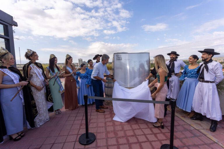 El acto, que consistió en la colocación de una placa conmemorativa por los 90 años de la Fiesta Nacional de la Vendimia, contó con la presencia del intendente de la Ciudad de Mendoza, Ulpiano Suarez; el subsecretario de Cultura de la Provincia, Diego Gareca; y la directora de Gestión Territorial, Laura Uano, quienes acompañaron este reconocimiento que puso en valor la historia, la identidad y el profundo significado cultural de la Vendimia para los mendocinos.