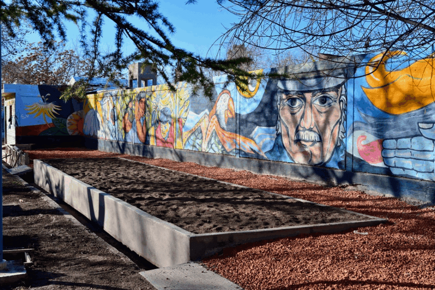 Una de las principales novedades de la remodelación es la construcción de una cancha de tejo en el sector de mayor altura, junto al Centro de Jubilados. De hecho, para adecuar esta área, se construyeron muros de contención y puentes que facilitan el acceso. Así, se consolida un espacio pensado para la recreación activa de las personas mayores del barrio.