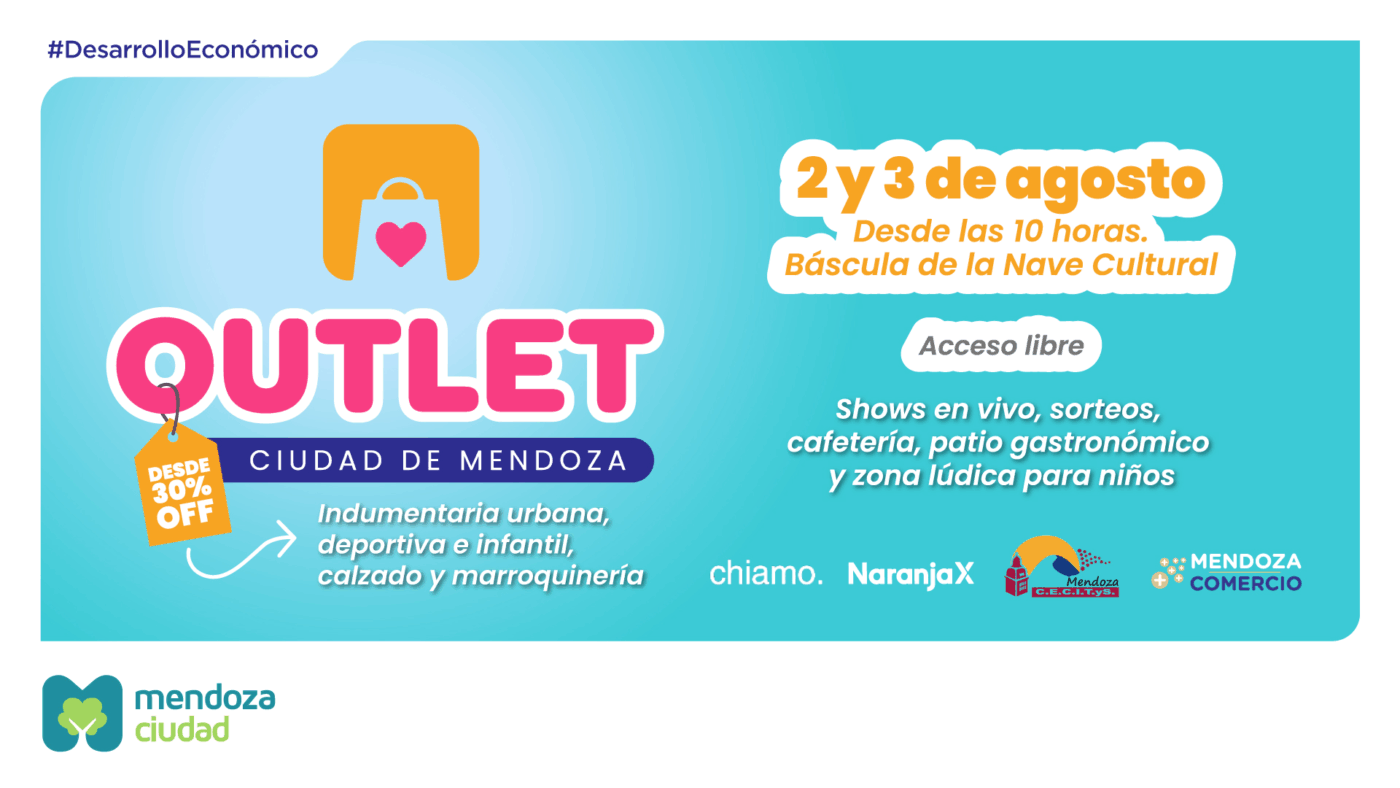 Con el objetivo de impulsar el comercio local, la Ciudad pondrá en escena la primera edición del Outlet Ciudad de Mendoza, un evento que contará con la participación de más de 30 comercios que ofrecerán sus productos a precios especiales, con descuentos mínimos del 30%, 40% y hasta el 50% en productos seleccionados, en el marco del cierre de temporada. Se llevará a cabo el sábado 2 y el domingo 3 de agosto, a partir de las 10, en el espacio La Báscula de la Nave Cultural.