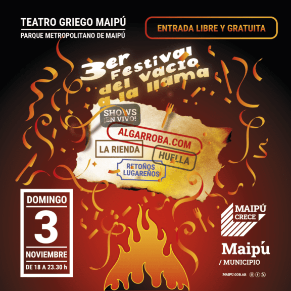 El próximo 3 de noviembre desde las 18 se realizará en el Parque Metropolitano la tercera edición del Festival del Vacío a la Llama, organizado por la Muni de Maipú. Esta esperada velada contará con prestigiosos asadores que demostrarán su habilidad para deleitar a los más exigentes jurados con diferentes preparaciones de este exquisito corte. Además, se confirmaron las bandas que dirán presente en el Teatro Griego esa noche, con la participación de Algarroba.com, La Rienda, Huella y Retoños Lugareños. La entrada es libre y gratuita.
