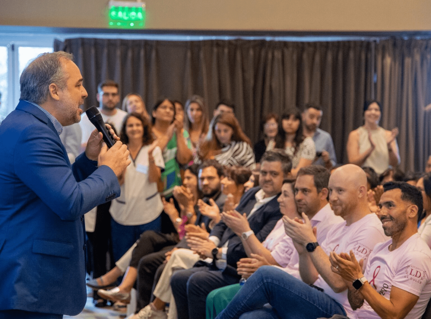 “No hay camisetas ni de Boca ni de River, hoy somos todos un equipo, ver a todos con la camiseta rosa es muy importante para mí. Hace unos años atrás le tocó vivir esta situación a mi mamá y lo afrontó con normalidad porque detrás tenía médicos, tenía a sus hijos y gente que la apoyaba. Eso quiero que sientan ustedes: cualquier cosa que les toque vivir que les pueda cambiar la vida, nosotros vamos a estar para ayudar” señaló Carlos Tévez y añadió: “Estamos hoy para dar un diagnóstico y si tenemos que afrontarlo junto, lo afrontaremos juntos porque tenemos una misma camiseta, la rosa”.