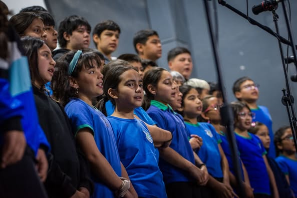 Con la presencia de más de 1.500 niños, integrantes de 38 instituciones se desarrolla en el cine teatro Colón, de Palmira, el 9° Encuentro de Coros de Escuelas Primarias de General San Martín.