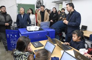 El Gobernador destacó la incorporación de herramientas tecnológicas en la educación: “me estimula ver estos progresos, estas plataformas. Este kit tecnológico, ayuda mucho al docente a hacer su tarea de enseñar y ayuda muchísimo al estudiante en su tarea de aprendizaje”.