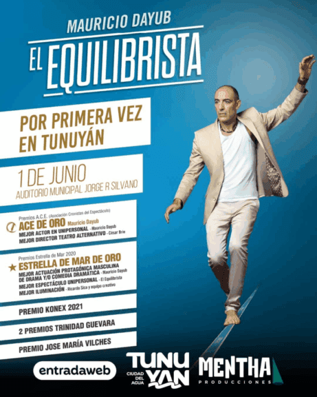 El próximo domingo 1 de junio a las 20:00 horas, el Auditorio Municipal “Dr. Jorge Raúl Silvano” se convertirá en el escenario de una noche histórica: la función número 800 de El Equilibrista, obra consagrada del reconocido actor argentino Mauricio Dayub.