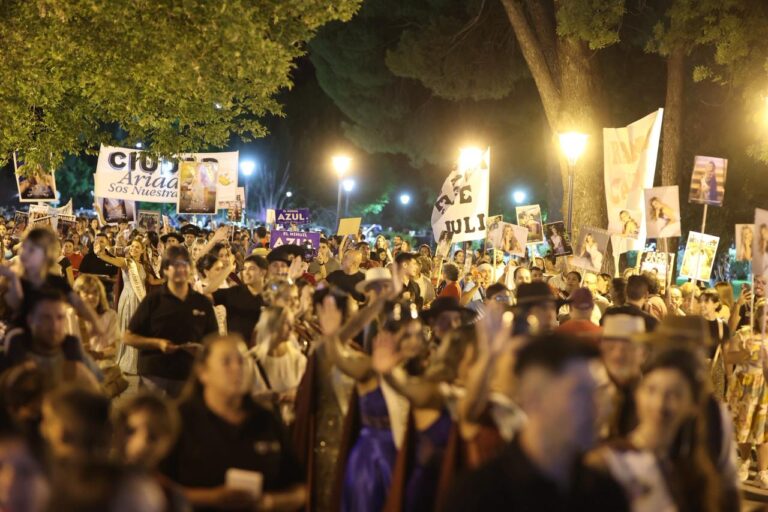 Mientras en el predio los distritos mostraban su trabajo, desde Yrigoyen y Espejo salían las camionetas con las representantes vendimiales. El público las alentaba a lo largo del bulevar hasta la Rotonda del Mapa; luego retornaron por la avenida hasta Plaza Francia.