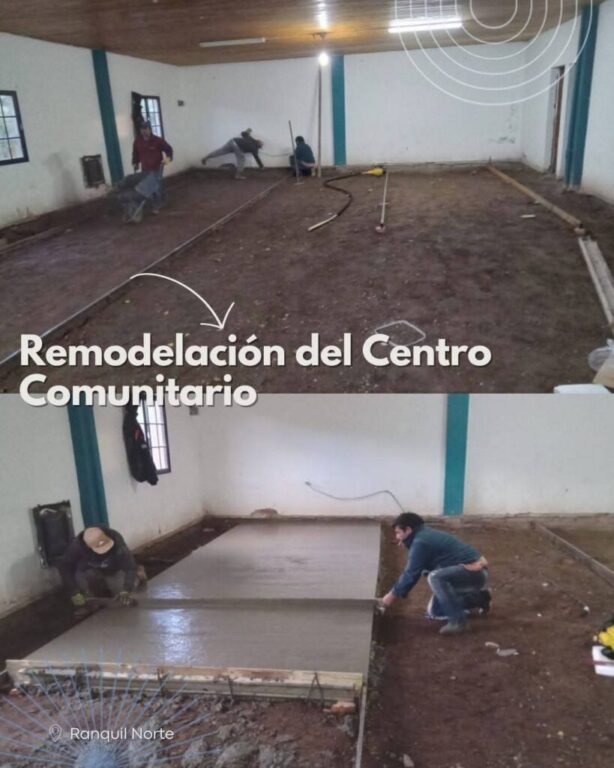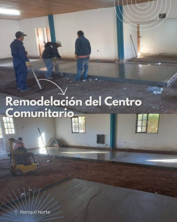 Asimismo, desde Ranquil Norte, en el Centro Comunitario continúan avanzando las obras d remodelación, logrando de esta manera poder mejorar el espacio físico y poder continuar con las acciones enmarcadas desde el Municipio en diversas tareas de las actividades en desarrollo que se realizan cotidianamente. Por otro lado, la Unidad Especial de Tierras se focalizo en poder lograr avanzar con la regularización dominial con asesoramiento jurídico municipal.