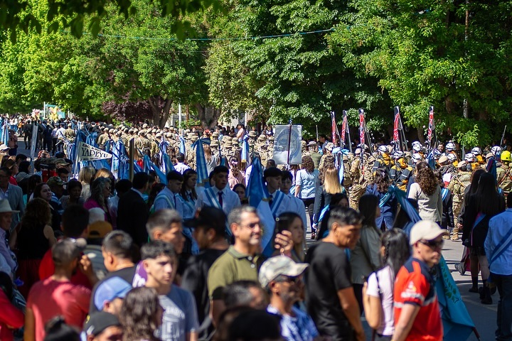 Las sombreadas y apacibles calles de la VILLA, se llenaron de pasos, sonidos y compases. Vecinos Autoconvocados,Alumnos de todos los niveles y modalidades, Colectividad Boliviana, Escuelas de Danzas, Equipos Municipales de distintas disciplinas deportivas, Vehículos recuperados y nuevos, recientemente adquiridos, Empleados Municipales, Fuerzas Policiales, Veteranos de Guerra de Malvinas, Agrupación Militar de Campo Los Andes, Centros Tradicionalistas, Bomberos y Defensa Civil, fueron PROTAGONISTAS de una mañana que se pobló de aplausos y abrazos, que se desplegaron, al compás del MÁGICO SONIDO de las Bandas Militares “GRANADERO CHEPOYÁ” y “TALCAHUANO”.