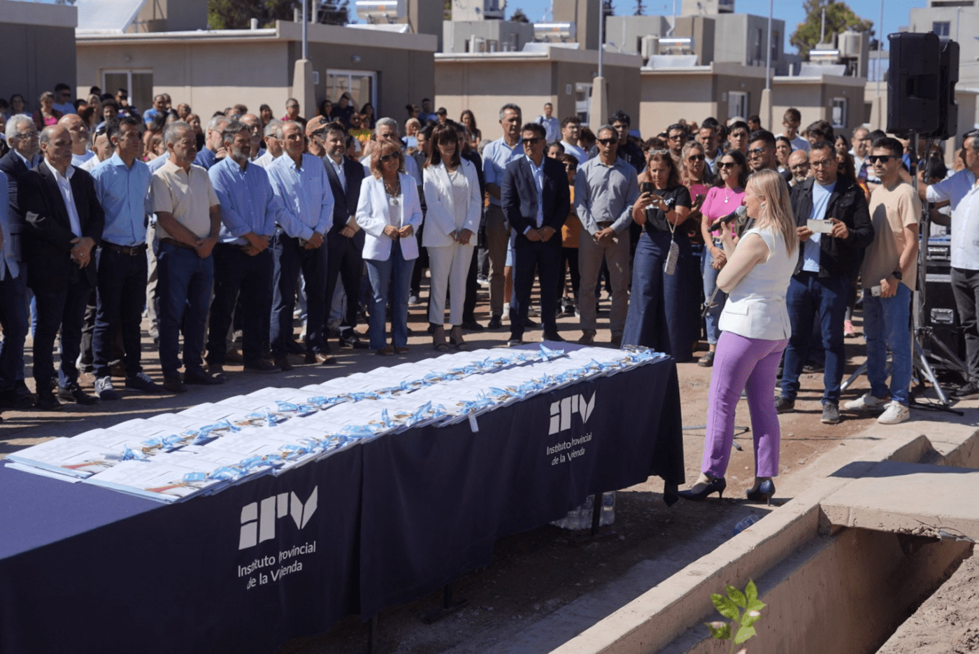 “Siempre es una alegría entregar viviendas porque sabemos qué significa para cualquier argentino la casa propia” dijo la vicegobernadora, Hebe Casado: “Sabemos que a nivel nacional la obra pública se detuvo a cero y en la provincia quisimos hacer algo diferente, porque lo permitía el orden económico que tenemos hace muchos años. El gobierno ha hecho una inversión de más de 3.000 millones y los vecinos tienen que seguir pagando las cuotas”.