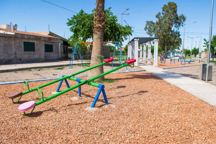 Inicialmente, el predio se encontraba en estado de baldío y sin iluminación. Allí se realizaron trabajos de movimiento de suelo, de acuerdo a las cotas de nivel de cordón; se construyó el piso de hormigón simple en senderos internos; se colocaron torres de iluminación, sumado al equipamiento urbano, bancos, papeleros, mesas, juegos infantiles y aparatos de gimnasio al aire libre.