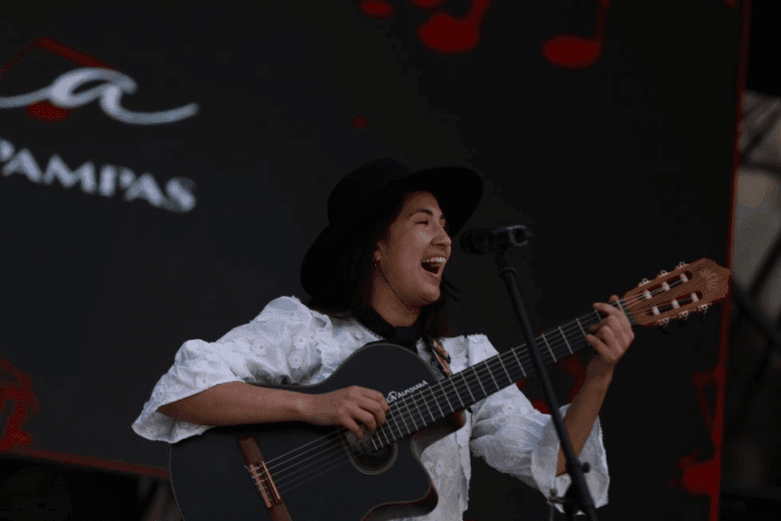 Pasado el mediodía, comenzaron las propuestas musicales sobre el escenario principal, con la presentación de Sebastián Luján, Bándalos y Somos Herencia, quienes antecedieron a “Sele Vera y Los Pampas”, el cierre estelar del evento. La joven artista oriunda de Bariloche subió alrededor de las 17:30, cuando con sus ritmos de chamamé hizo cantar, bailar y saltar a todos los presentes.