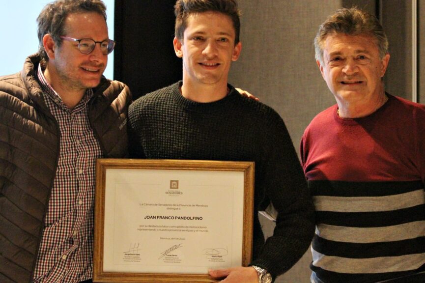 «Por su destacada labor como piloto de motociclismo, representando a nuestra provincia en el país y en el mundo», esbozó el recordatorio donde los funcionarios mendocinos dejaron su rúbrica y las felicitaciones pertinentes.