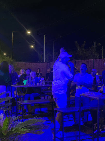 Que con su magia y carisma hizo pasar al público una noche increíble. Cantando, haciendo que todos bailen y regalando tragos al que más bulla hacía.
