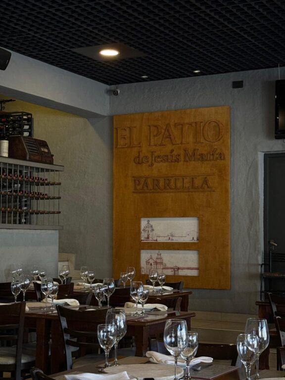 En El Patio de Jesús María, cada visita confirma lo que su eslogan promete: secretos bien guardados y sabores únicos, con el bife de chorizo, el asado de tira, el vacío de ternera y el chivo como verdaderas estrellas de la parrilla, acompañados por vinos seleccionados que realzan cada sabor.