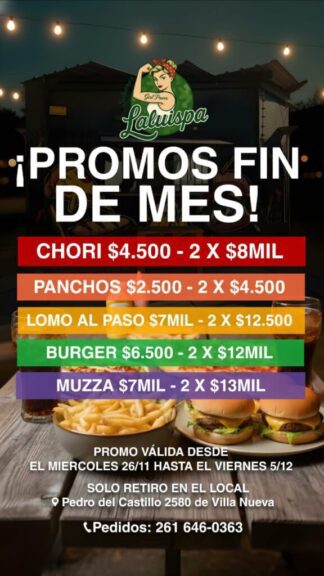 En Pedro del Castillo 2858, en Villa Nueva, Guaymallén, se encuentra Sabores Laluispa, un pequeño local que ofrece platos caseros abundantes y llenos de sabor. Este espacio se ha convertido en una opción destacada para quienes buscan comida “como en casa”, con la comodidad de poder llevarla o recibirla a domicilio.