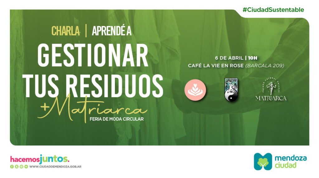 El evento será el sábado 6 de 10 a 13h, en el café La Vie en Rose, Barcala y España de Ciudad. El encuentro es organizado por la Municipalidad de la Ciudad de Mendoza y la Feria de moda circular Matriarca. ¡Sumate y #hacécircular!