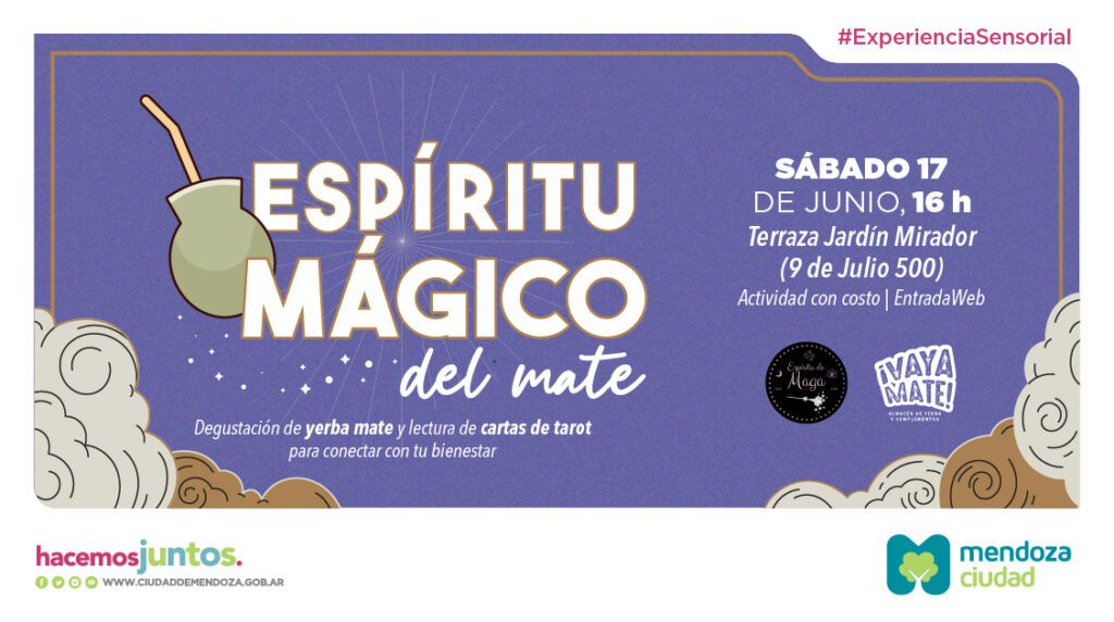 El próximo sábado 17 de junio, a las 16, la Terraza Jardín Mirador de la Ciudad estará celebrando una cita inolvidable: «Espíritu Mágico del Mate». Esta maravillosa tarde yerba mate y tarot será para los turistas, mendocinos y mendocinas invitados a dar un paso a un mundo diferente, que combina cultura, espiritualidad, y el disfrute de una bebida tradicional.