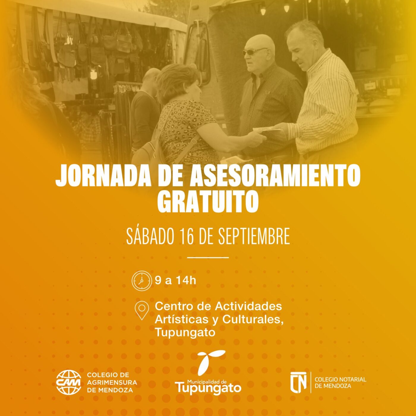 La cita está programada para el sábado 16 de septiembre en el Centro de Actividades Artísticas y Culturales de Tupungato. Los servicios de asesoramiento estarán disponibles desde las 9 de la mañana hasta las 2 de la tarde, sin necesidad de programar una cita previa. Las consultas podrán abordar una amplia variedad de temas, desde catastros y mensuras hasta loteos, sucesiones y testamentos, todo lo relacionado con propiedades inmuebles.