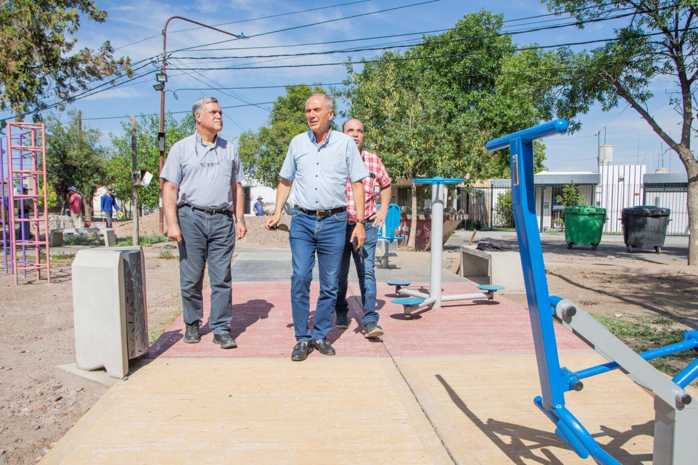 Primero, se verificaron las mejoras realizadas en la plaza de Los Inmigrantes del Barrio II CEC y en la plaza del Jardín Docente de la Ciudad de San Martín. Allí, el intendente tuvo la oportunidad de conversar con trabajadores y vecinos de la zona.
