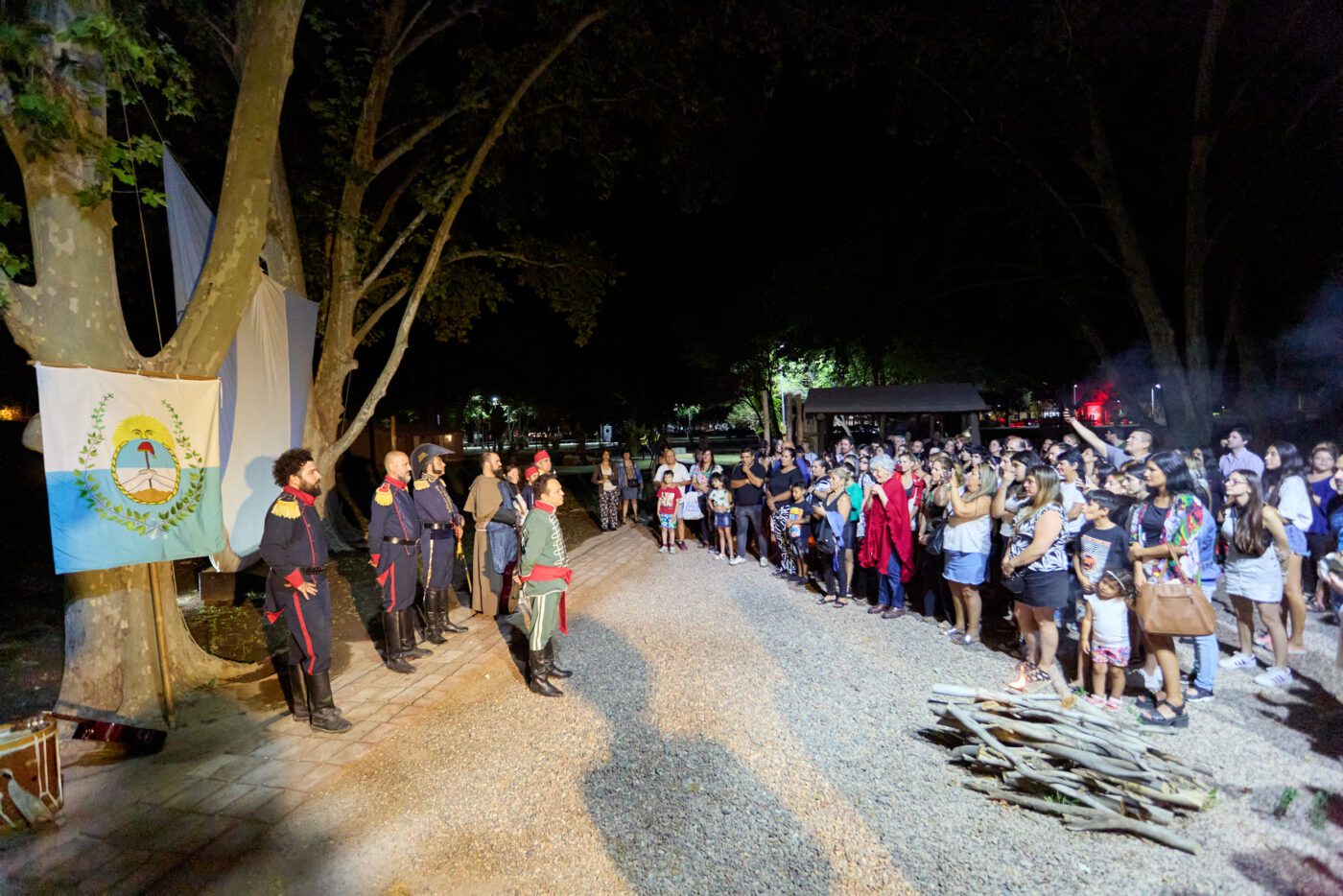 Cerca de las 9 de la noche, con un cálido clima, el soldado Sánchez asistió a la velada mezclando la dramaturgia con la historia e invitando a los espectadores a dirigirse a las barracas para disfrutar de la obra teatral “El Pueblo que hizo Patria”. Escrita por el actor y dramaturgo Gerónimo Miranda y dirigida por Hugo Moreno, esta producción fue declarada de interés legislativo por parte de la Honorable Cámara de Diputados de Mendoza gracias a su aporte cultural e histórico para la provincia.