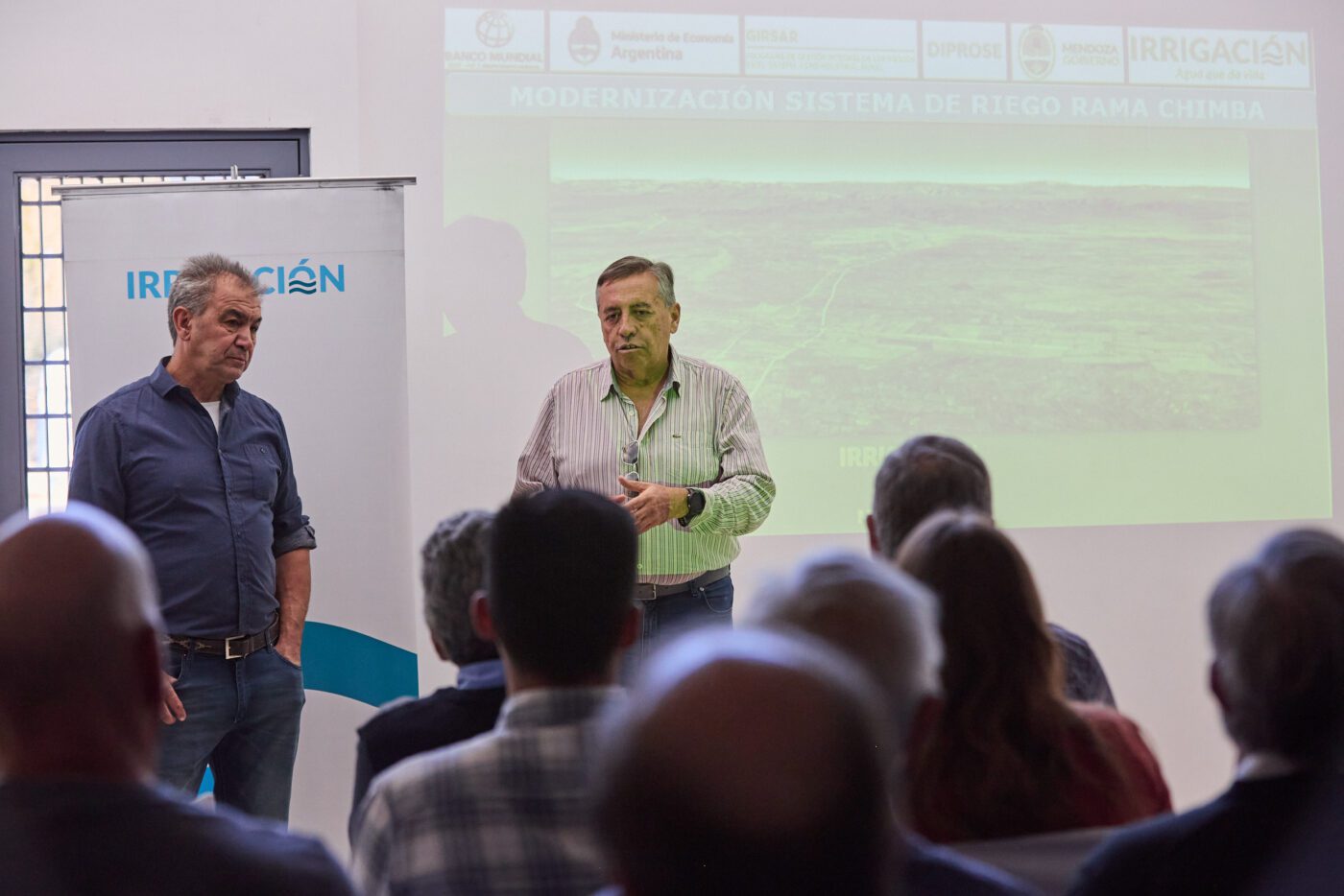 Previo a la recorrida, se desarrolló una reunión en la Asociación Independencia, en la localidad de Palmira, San Martín, donde se presentó el Proyecto Rama Chimba a los regantes de la zona. Allí, el Superintendente Marinelli expresó: «Esta obra ya tiene preadjudicación y va a ser próximamente adjudicada. Ahora se impermeabilizarán alrededor de 9 kilómetros del cauce y anteriormente ya hicimos otra impermeabilización en dos etapas».