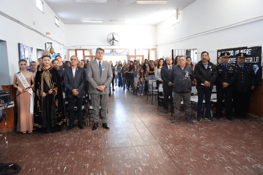 Participaron Mario Abed, intendente de Junín; Ricardo Morcos, presidente del HCD; concejales, David Sáez, senador provincial; Sebastián Salinas, director de Recursos Humanos; Osvaldo Selva y Juan Carlos Caballero, excombatientes de Malvinas; Camila Sáez, reina departamental de la Vendimia; Rebeca Brino, reina distrital de Rodríguez Peña.