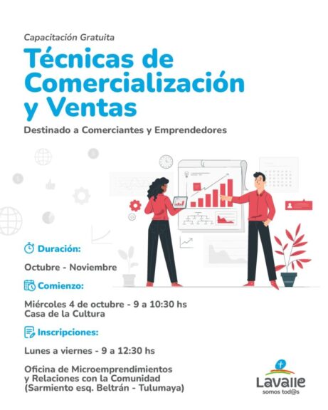 El Municipio de Lavalle, a través de la Oficina de Microemprendimientos y Relaciones con la Comunidad, anunció dos talleres de capacitación que brindarán valiosas oportunidades de aprendizaje para emprendedores, comerciantes, artesanos, entidades intermedias. y organizaciones de la sociedad civil en el departamento.