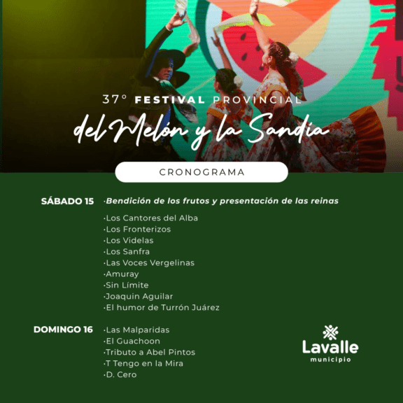 Este encuentro, organizado por la Comisión del Festival con el auspicio de la Municipalidad de Lavalle, pone en valor la producción de melones y sandías, y tendrá en el escenario a grandes artistas locales y nacionales.