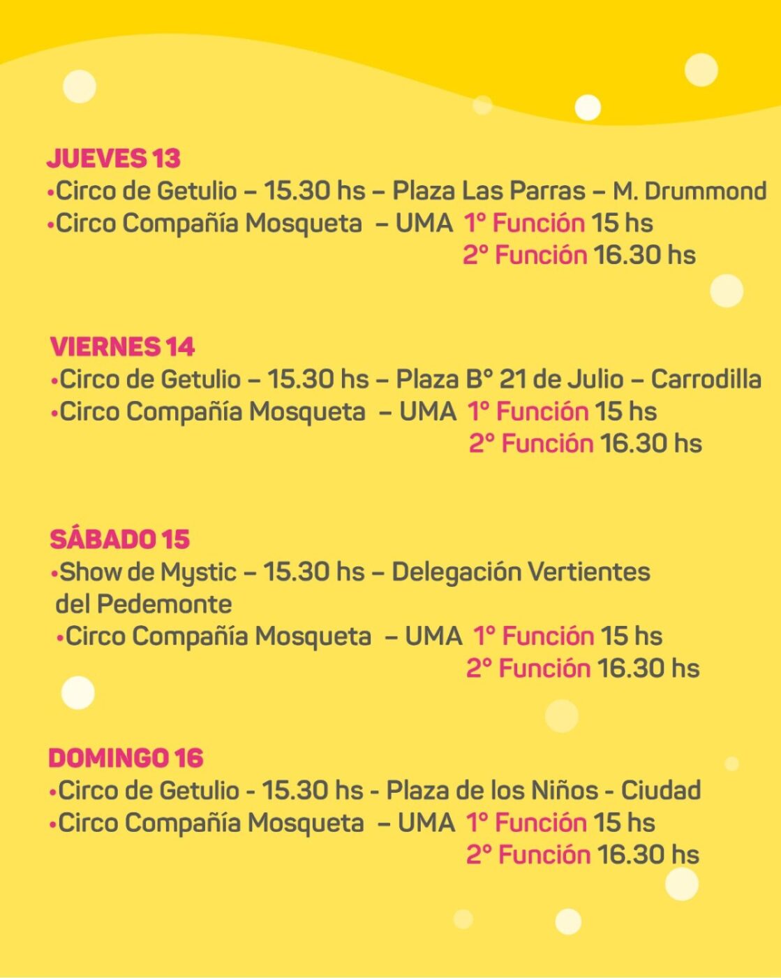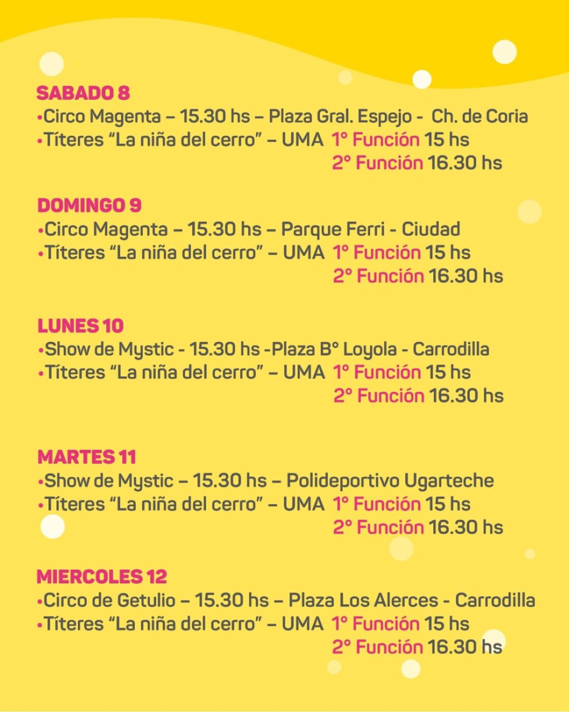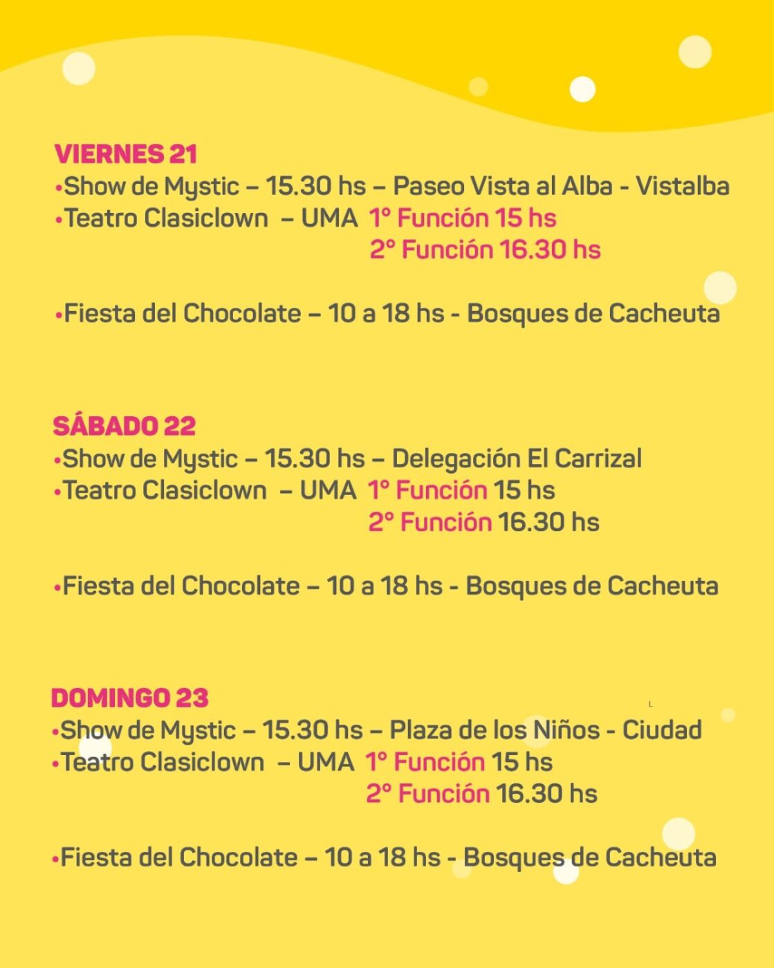 Las actividades por las vacaciones son muy variadas: obras infantiles, Fiesta del Chocolate, preliminares del Mundial de Tango y mucho más.
