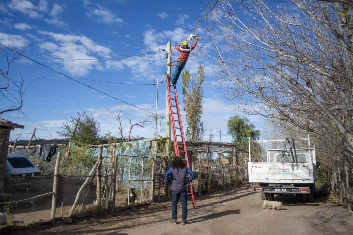 Se trabajó en conjunto con la Cooperativa Sub Río Tunuyán que realizaron la colocación de postes y su correspondiente tendido eléctrico, mientras que el Municipio colocó los brazos y luminarias de sodio de 150 watts de potencia.