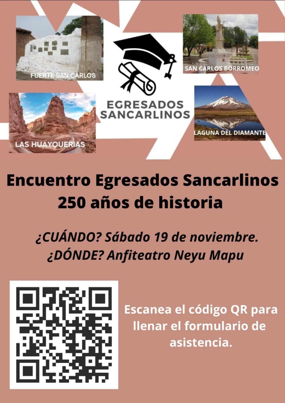 Justamente, el Primer Encuentro de Egresados Sancarlinos se llevará a cabo el próximo sábado 19 de noviembre en el Anfiteatro Neyu Mapu. A partir de este 2022, cada tercer domingo de noviembre los egresados sancarlinos podrán festejar su día, según expuso mediante ordenanza el Honorable Concejo Deliberante, declarándolo de interés municipal.