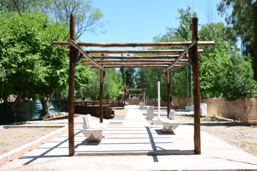 Islas, bancos, pasillos y pérgolas son parte de la obra que embellece este espacio, la Plaza 25 de Mayo que es utilizado por niños, niñas, jóvenes y adultos del lugar para actividades recreativas, deportivas y sociales.