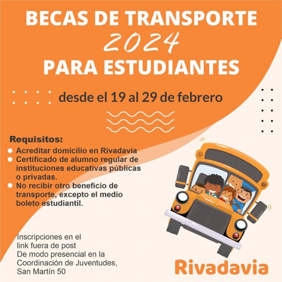 El Programa de Becas de Transporte, que ofrece la Municipalidad de Rivadavia, abre su período de inscripción para los estudiantes del departamento que quieran recibir el abono mensual.