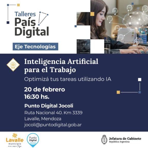 En el CIC de Jocolí, el taller se realizará el martes 20 de febrero, a las 16:30 horas, y estará orientado a empleados, educadores y emprendedores. El objetivo es brindar herramientas gratuitas y estrategias para aprovechar la inteligencia artificial en el ámbito laboral y en la “ingeniería de consignas”.