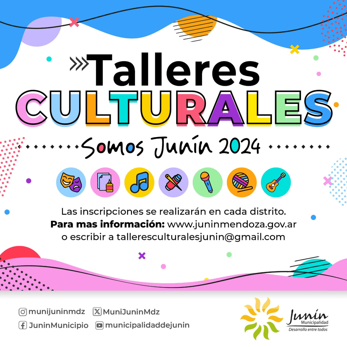 La Municipalidad de Junín ha dado inicio a las convocatorias para los Talleres Culturales 2024, brindando a los vecinos una amplia gama de opciones para sumergirse en actividades artísticas, socioculturales y educativas. Estos talleres se llevarán a cabo en diferentes distritos, y aquellos interesados podrán inscribirse en los horarios correspondientes a cada taller.