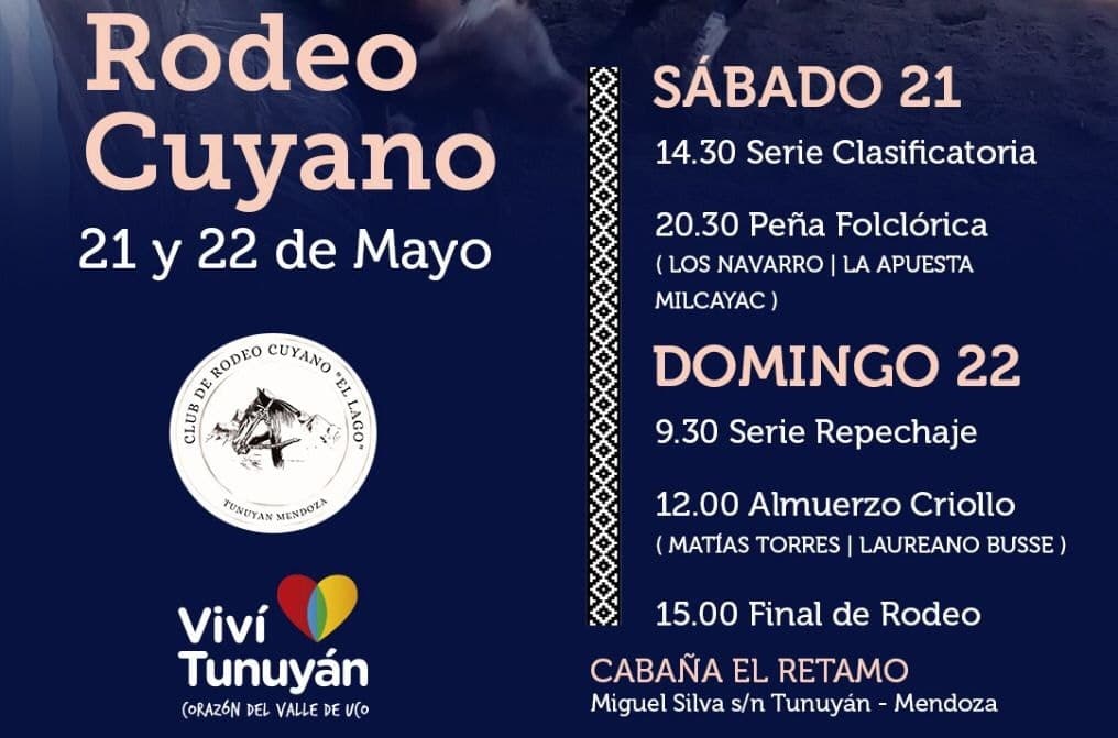 Con 2 días con espectáculos de caballos criollos, comidas típicas, exposiciones y shows en vivo, el gran Rodeo Cuyano que organiza Tunuyán el próximo fin de semana promete ser un excelente y muy concurrido evento.