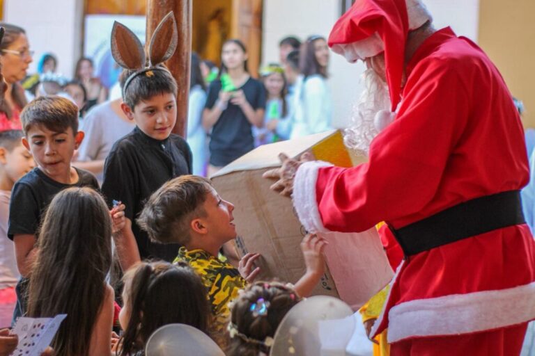 Entre luces, risas y miradas expectantes, niñas y niños se acercaron para compartir sus cartitas, escritas con manos pequeñas y sueños enormes. Papá Noel escuchó atentamente a cada uno de ellos, generando un espacio de cercanía donde el tiempo pareció detenerse para dar lugar a la magia de la infancia.