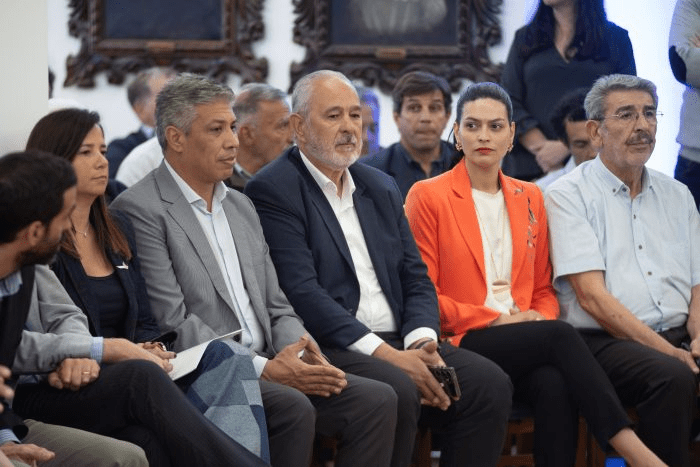 Además, asistieron el presidente provisional del Senado, Martín Kerchner; el presidente de la Cámara de Diputados, Andrés Lombardi; los ministros de Gobierno, Infraestructura y Desarrollo Territorial, Natalio Mema; de Hacienda y Finanzas, Víctor Fayad; de Producción, Rodolfo Vargas Arizu; el titular del Departamento General de Irrigación, Sergio Marinelli; el presidente de Aysam, Humberto Mingorance, legisladores nacionales y provinciales, como también representantes de las cámaras empresariales.