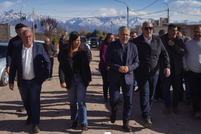 El mandatario estuvo acompañado por el intendente de San Carlos, Alejandro Morillas; la subsecretaria de Infraestructura y Desarrollo Territorial, Marité Badui; y el presidente del Instituto Provincial de la Vivienda (IPV), Gustavo Cantero, entre otras autoridades provinciales y municipales.