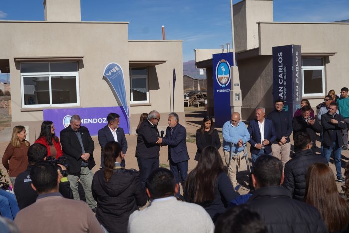 Durante su intervención, Cornejo también valoró el trabajo articulado con el municipio de San Carlos. “Con este municipio estamos trabajando muy mano a mano, cuidando cada peso”, señaló y consideró que si esa senda se mantiene, se podrá avanzar también con las obras de urbanización que acompañen las entregas.