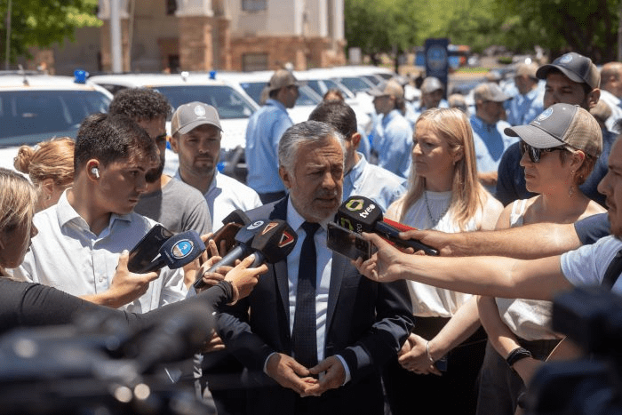 El Gobernador Alfredo Cornejo y la ministra de Energía y Ambiente, Jimena Latorre, junto a la vicegobernadora Hebe Casado, presentaron en la explanada de la Casa de Gobierno el plan de trabajo 2025 de la Policía Ambiental Minera. Esto se realizó en concordancia con el Nuevo Código de Procedimiento Minero, que eleva los criterios de sustentabilidad y control de la actividad en todas sus etapas.
