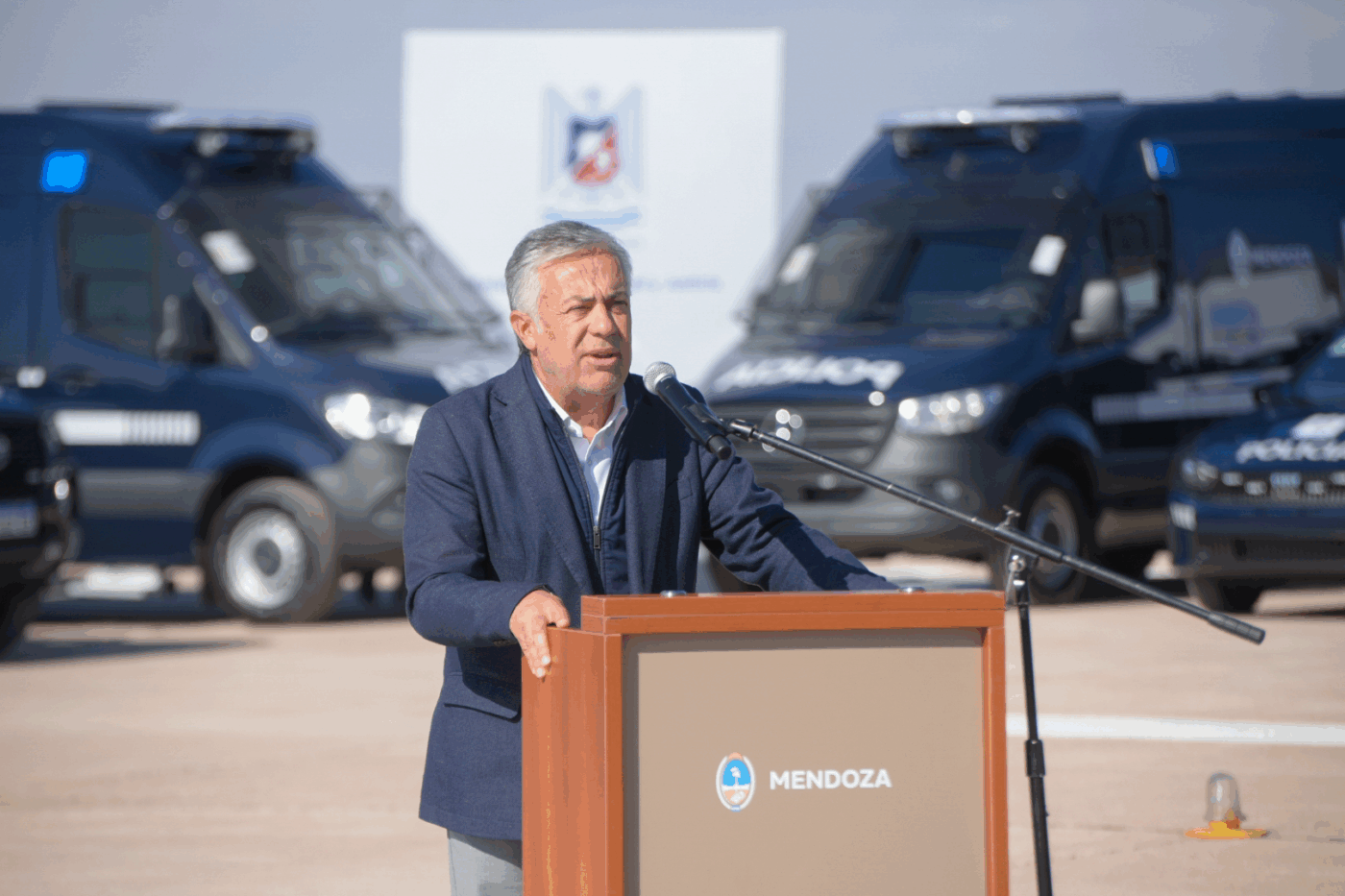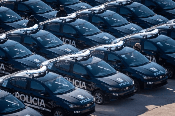 El mandatario provincial detalló que no solo “es la inversión más grande que se ha hecho en toda la década en autos, camionetas y motos, sino también en equipamiento, armas, chalecos y fundamentalmente en tecnología como cámaras infrarrojas, identificadores faciales y la comisaría a bordo”. Esto lo dijo en referencia a los patrulleros equipados con computadoras conectadas en red, que sumarán 400 unidades más a las 200 ya existentes.